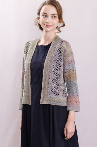 掲載の作品は色番選択の1例です。購入色番選択画面でお好みの色番、数量を選択下さい。なお、着分の材料購入で、編み図希望のお客様には編図(B4サイズ)画像データを無償提供(別途Mail添付)しますので、購入手続き最後のお客様情報を入力するページの備考欄に「着分購入、作品番号XX-XXXXの編図希望」と入力下さい。